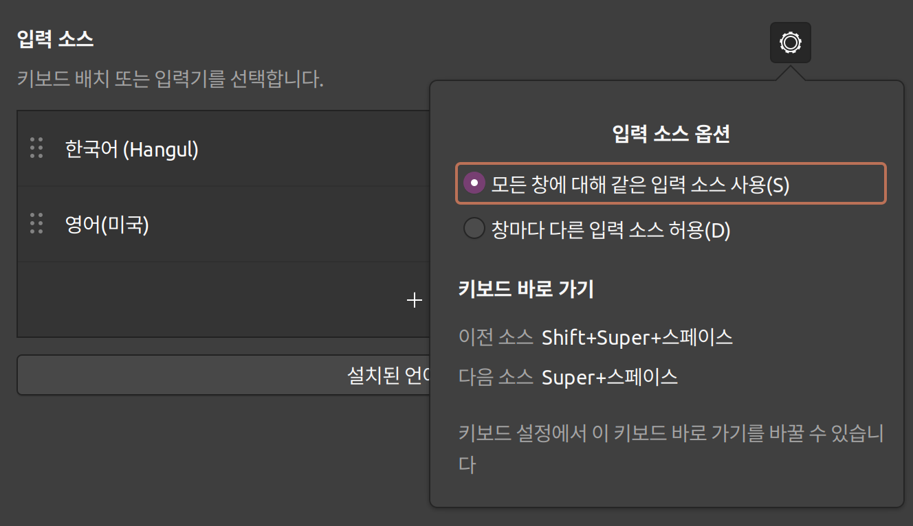기본적으로 super + space 를 통해서 한/영을 전환할 수 있는데 이게 너무 불편해서 고쳐보려고 한다.