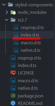 @types를 이용해 설치하면 index.d.ts라 하여 타입을 설정한 파일이 생긴 것을 볼 수 있을 것이다.