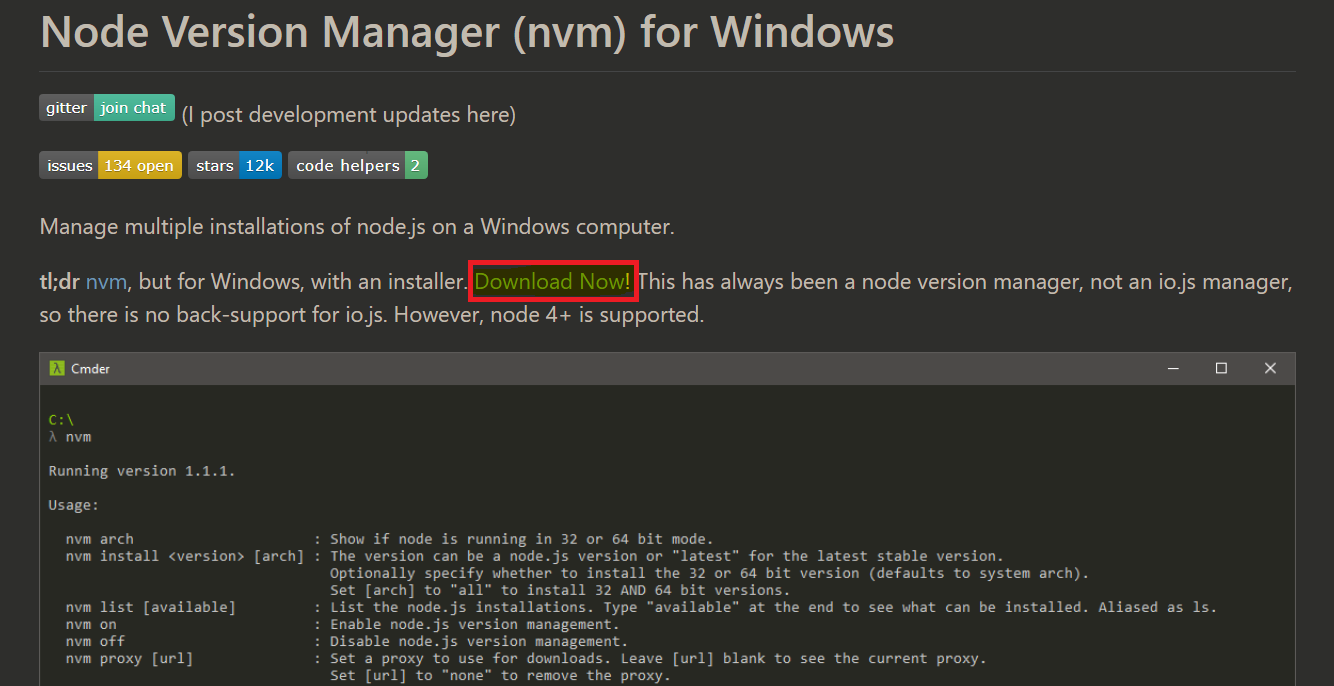 Window에서 Node를 업그레이드하기 위해서는 nvm-setup.zip을 다운로드 받아야 한다. 아래의 링크를 통해 다운로드 받자.