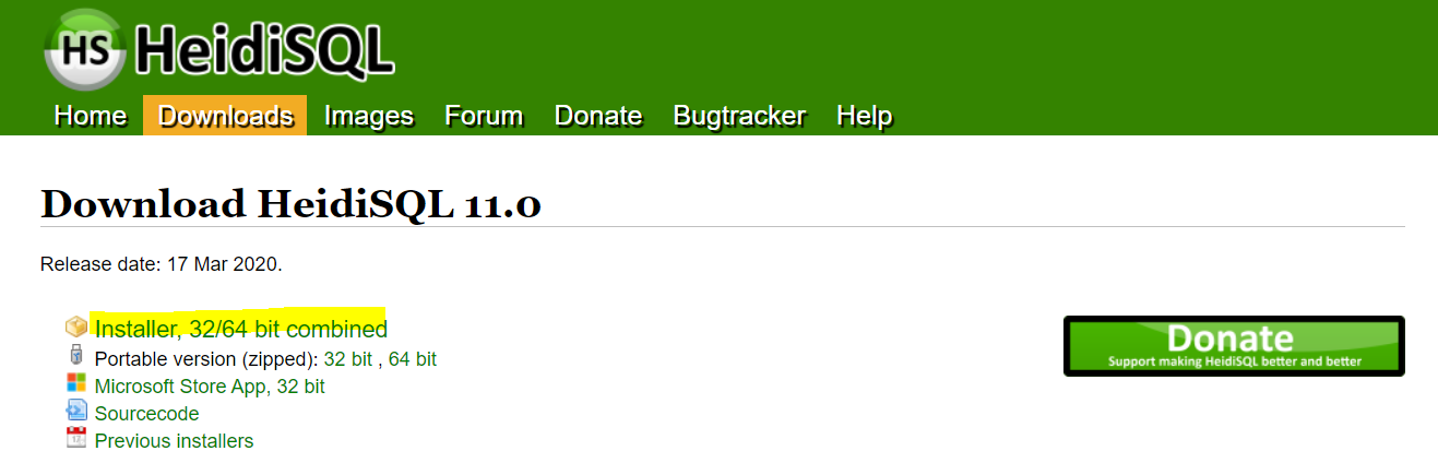 HeidiSQL은 관계형 데이터베이스 GUI 중 가장 유명한 툴로 정평이 나있습니다. 제가 보기에도 Workbench보다 더 편리하고 이용하기에도 좋으니 앞으로는 이걸 사용할 예정입니다. (안타깝게도 제작자가 mongoDB는 제작할 예정이 없다고 합니다) 홈페이지로 접속하여 다운로드를 진행합시다.
