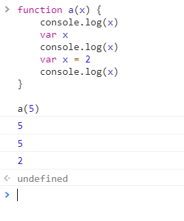 좌의 함수에서는 x에 선언만 했음에도 호이스팅을 통해 5의 값을 자동으로 할당받으며 재선언 하면서 바뀌었습니다.