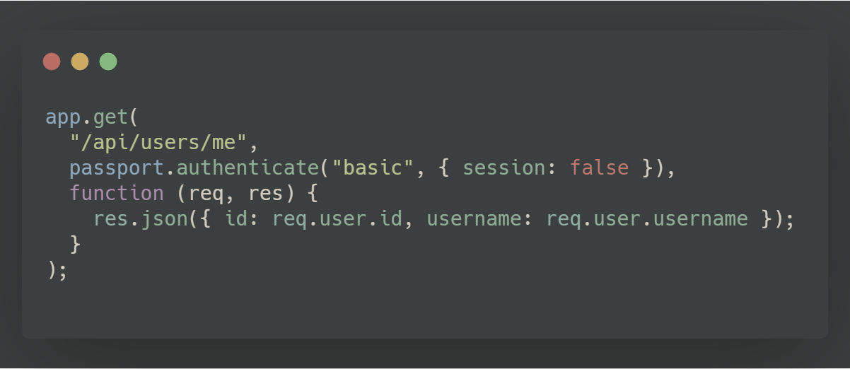 인증을 성공한 후에는 passport.js는 영구 로그인 세션(persistent login session)을 구성합니다. 이 방식은 브라우저를 통해 웹앱에 접속하는 일반적인 시나리오에서 유용합니다. 그러나 몇몇 경우에는 세션을 사용하는 것이 불필요한 경우가 있습니다. 예를 들면, API 서버는 각 요청때마다 인증을 요구합니다. 이 경우에는 세션 사용하지 않음으로서 안전하게 세션 기능을 끌 수 있습니다.