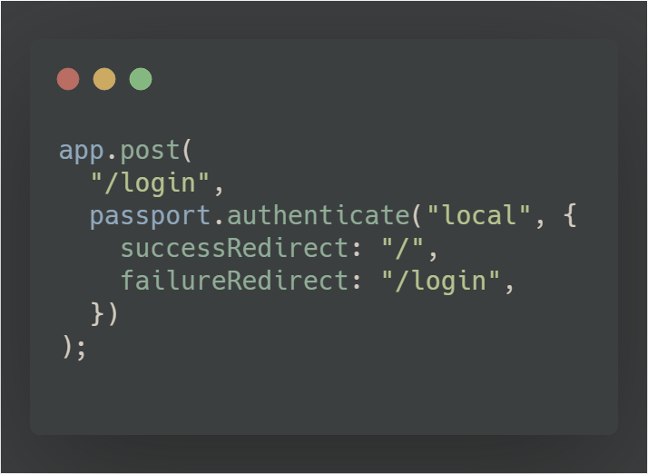 인증 요청은 passport.authenticate()를 호출하고 무슨 전략을 사용할 것지를 결정하는 것만큼 쉽습니다. authenticate() 함수는 일반적인 미들웨어로, express 프레임워크에서 미들웨어로 사용하기에 편리합니다.