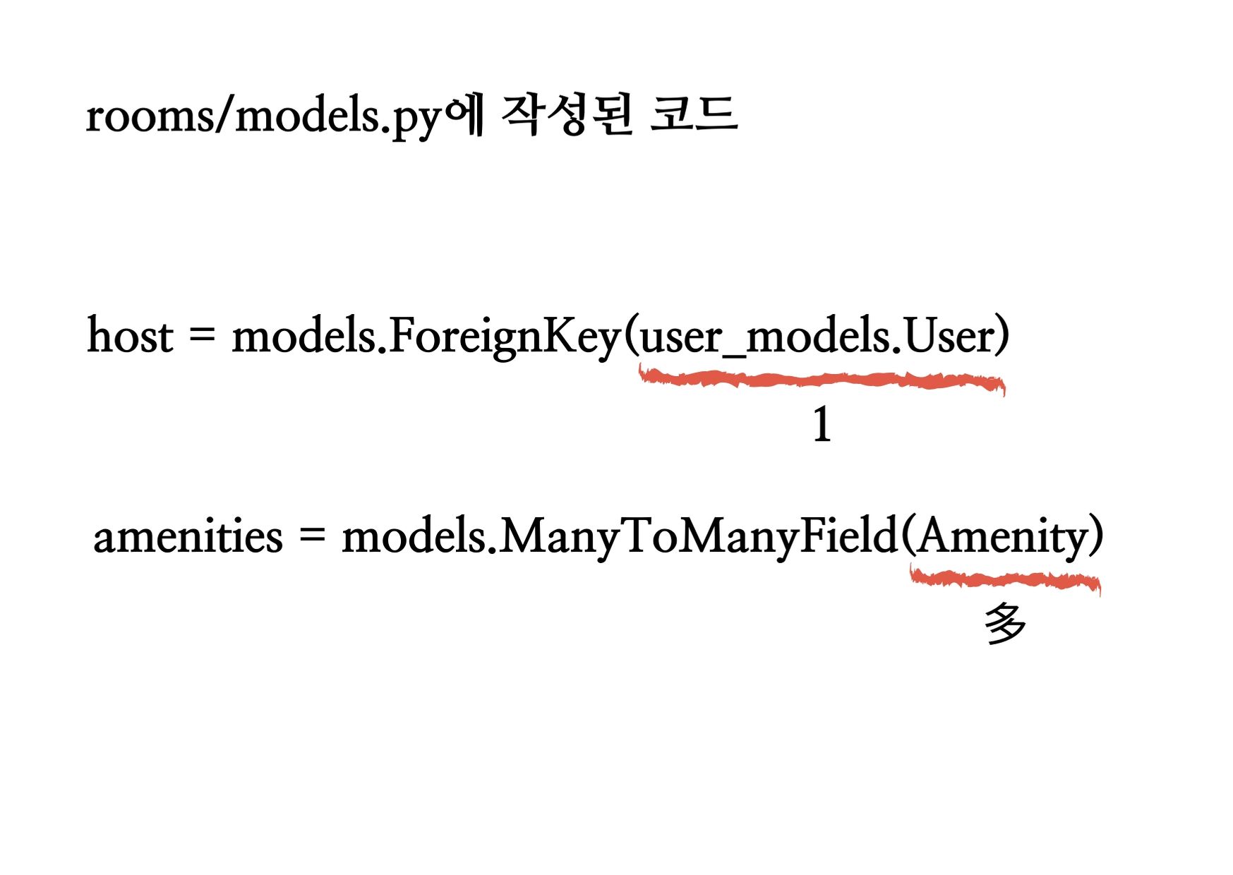 # 현재 Room에 관계를 설정했는데 Amenity 모델에 똑같은 관계 설정을 해줄 필요는 없다.