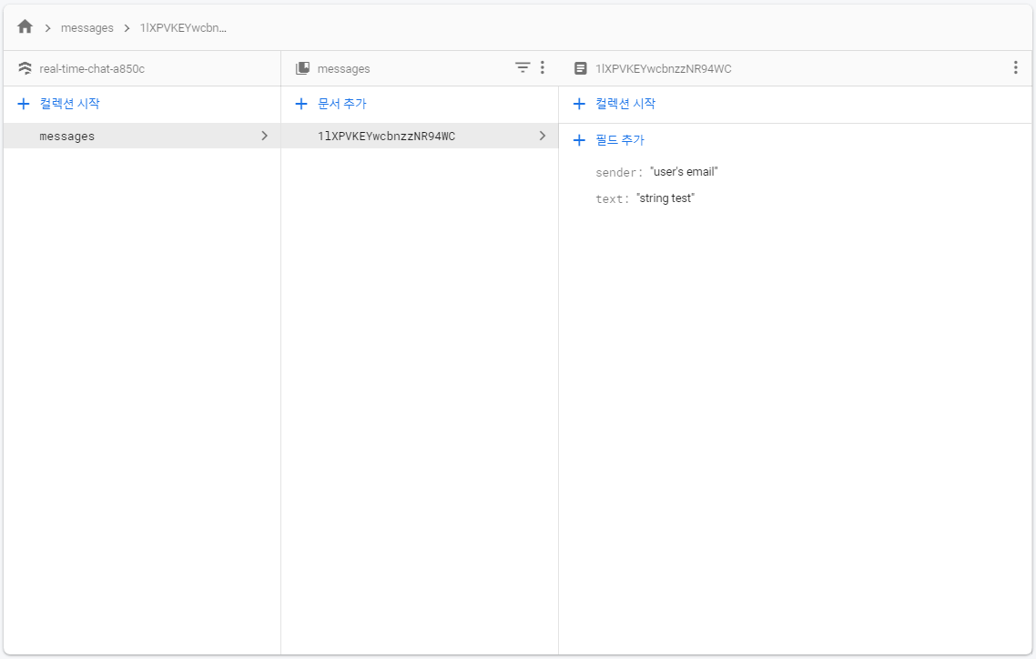 파이어베이스 인스턴스에 .collection을 통해 저장할 컬렉션을 생성하고,