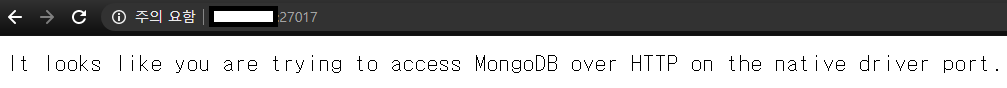 EC2에 EIP를 연결하고 27017 포트로 접근하면 다음과 같이 뜬다. 성공!