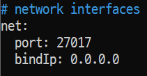 - 기본은 127.0.0.1 (localhost)이다. mongodb를 설치한 ec2에서만 mongodb를 사용할 것이 아니므로 변경하자
