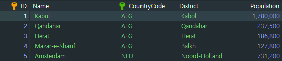 select * from usertbl limit 1, 3; // offset: 1, limit: 3 이므로 1, 2, 3 출력함