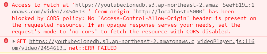 S3에 저장해놓은 비디오, 이미지를 로드하고 이용할 때 CORS 문제가 발생할 때가 있다.