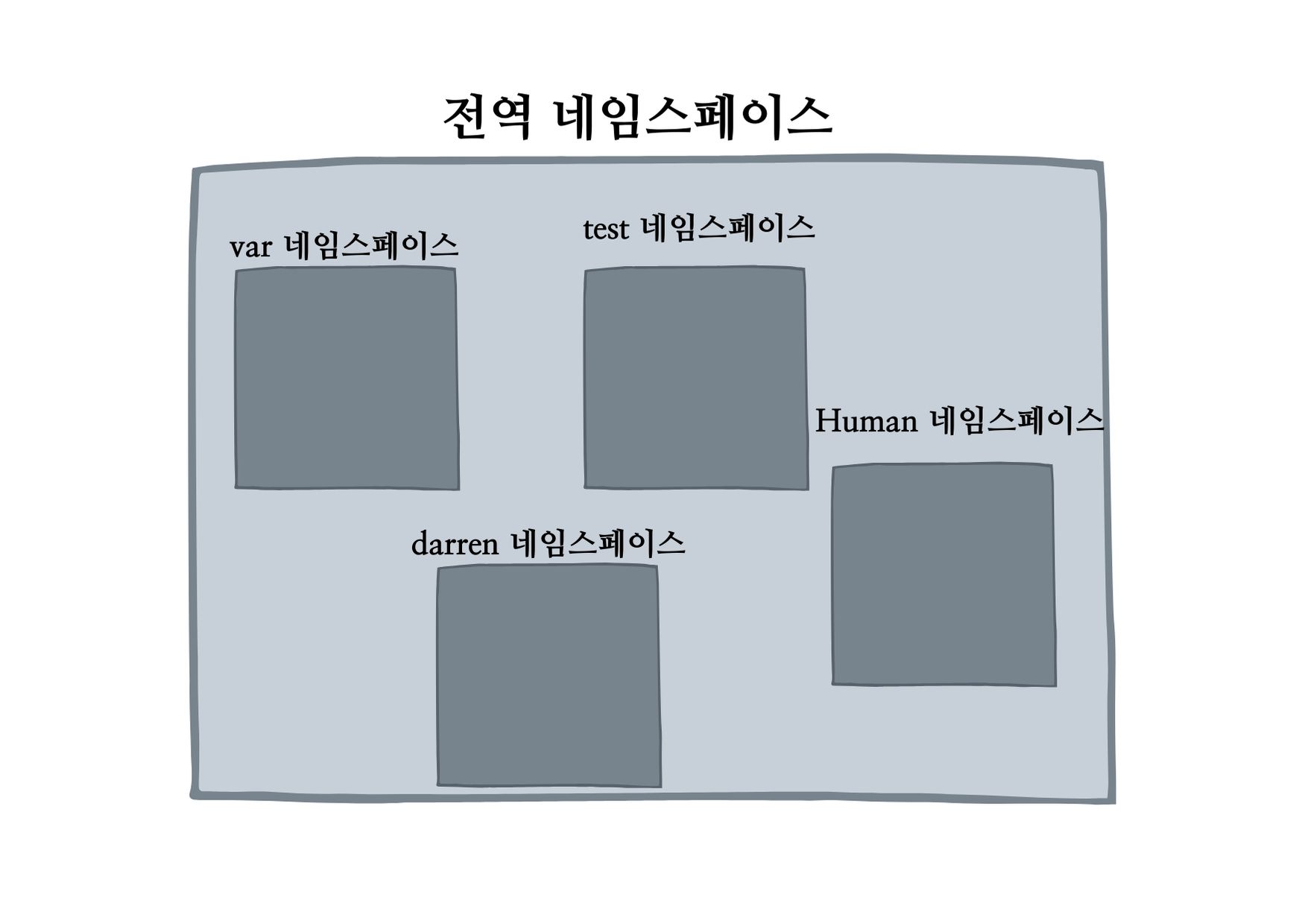 전역 네임 스페이스 위에 이미 기존재하는 built-in 네임스페이스가 존재하지만 우리는 이를 무의식적으로 이미 사용하고 있으므로 생략하겠습니다.