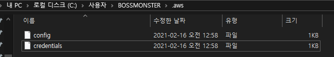앞서 언급하였듯, profile은 사용자 경로의 .aws에 존재한다.