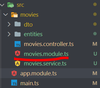 movies.module.ts가 생겼습니다.